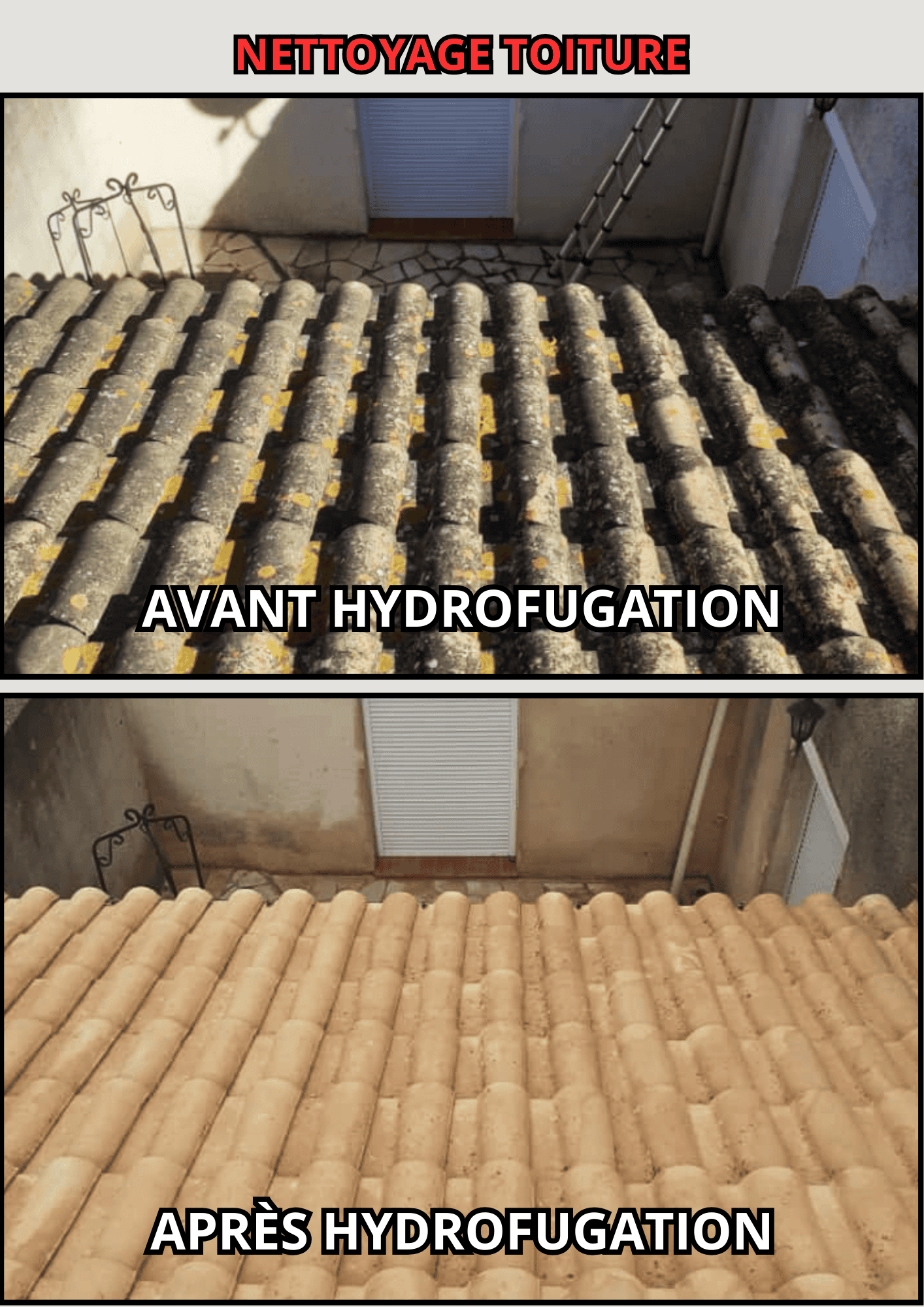 Nous assurons l’entretien de votre toiture par le biais d’une intervention complète et rigoureuse. Plus précisément, cette prestation commence par un nettoyage en profondeur de la surface, visant à éliminer toutes les mousses, lichens, algues, résidus de pollution et salissures accumulés avec le temps. Ensuite, nous appliquons un antimousse professionnel, spécialement formulé pour stopper la prolifération des micro-organismes et empêcher leur retour sur le long terme. Enfin, nous renforçons votre toiture avec un traitement hydrofuge protecteur, ce dernier forme ainsi une barrière imperméable contre l’humidité et les infiltrations tout en laissant respirer les matériaux.